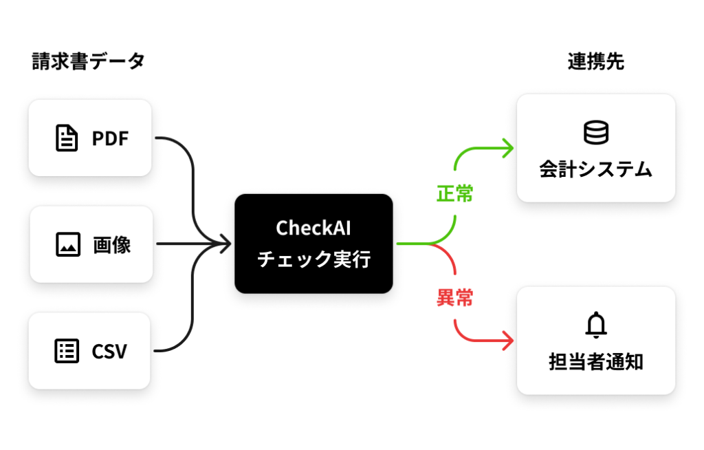 大量の受取・発行請求書の内容を、過去実績を学習したAIが瞬時に検査し、確認作業を1/10の時間に短縮します。